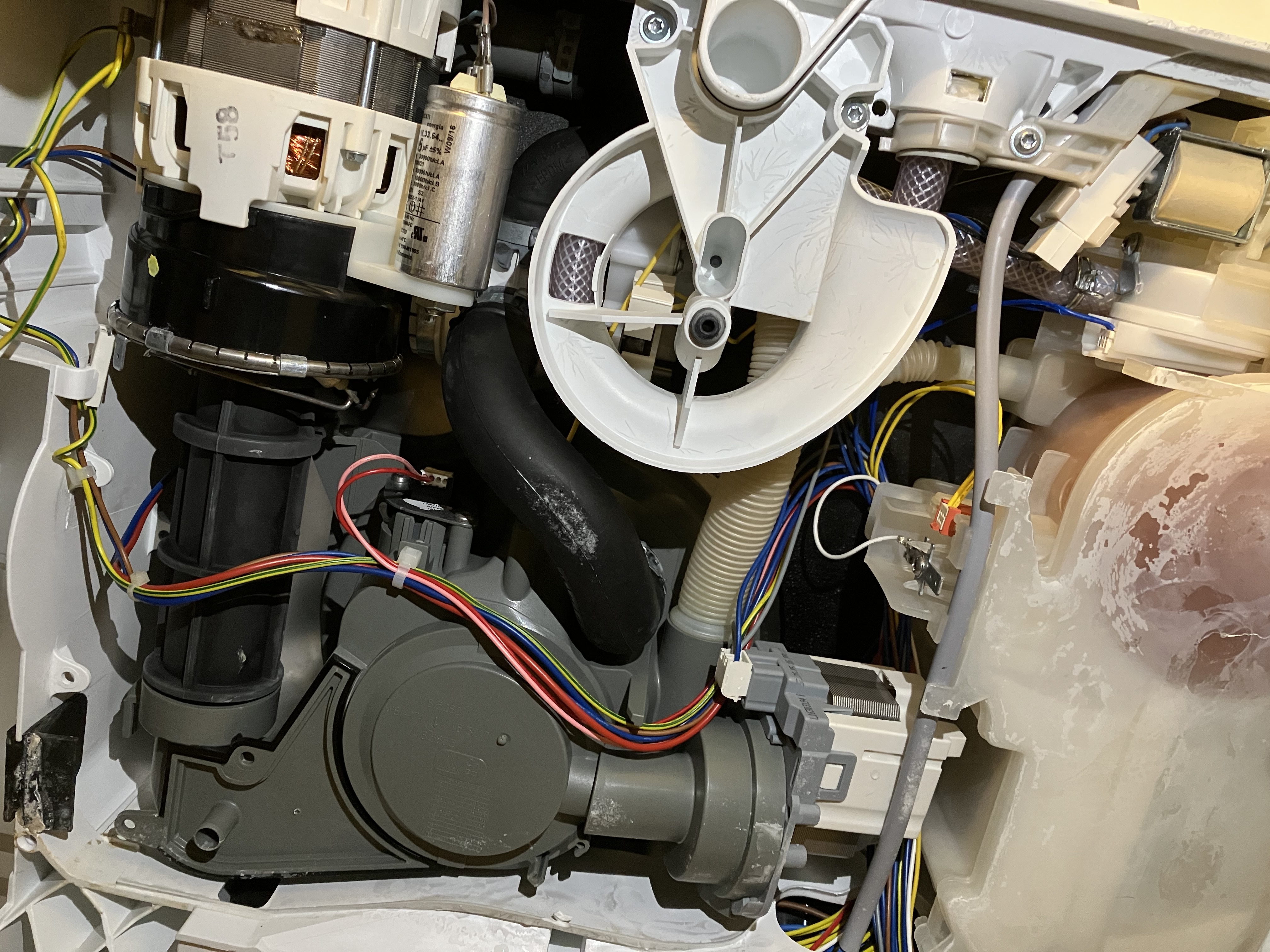 Ich hab den Geschirrspüler dennoch ausgebaut und nach der Wasserweiche geschaut. Jedes Erklärvideo welches ich gesehen hab, da ist die Wasserweiche für mich inzwischen sofort erkennbar. Aber bei meinem Geschirrspüler finde ich die Wasserweiche nicht. Wo versteckt die sich? Gibt es Geräte, die keine Wasserweiche haben? Was könnte den Fehler noch auslösen?