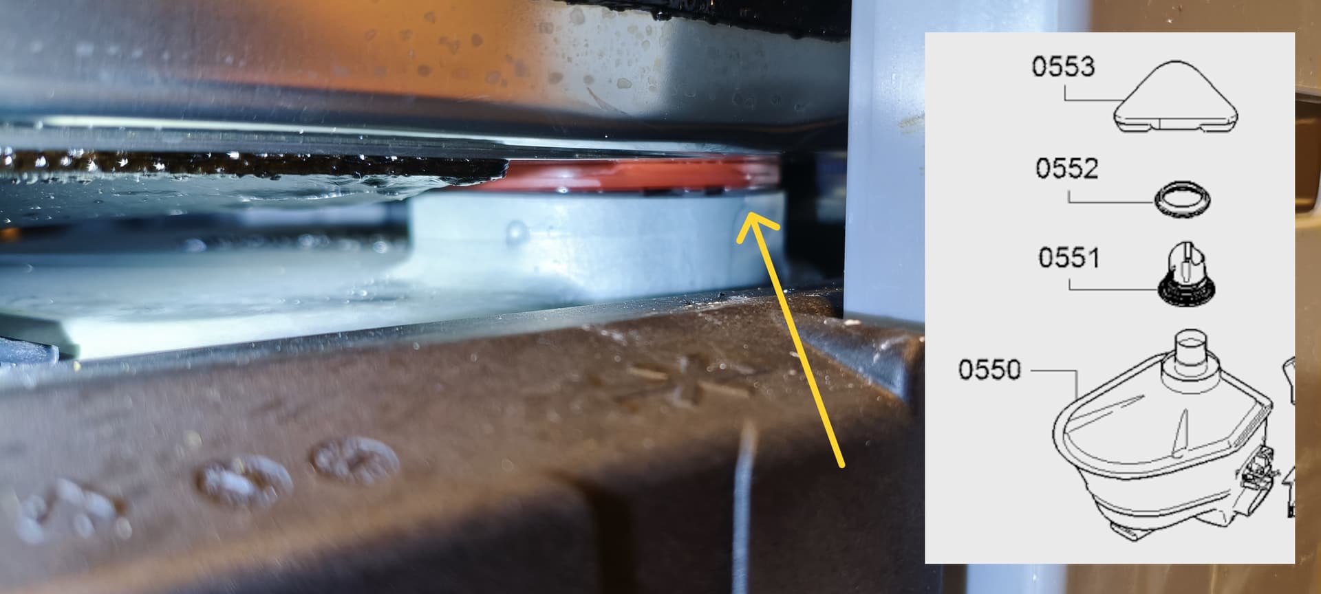 Ich würde mal annehmen dass ich den Stutzen 551 mit der integrierten Dichtung austauschen muss. Ich verstehe allerdings nicht wie dieser Stutzen gegen den Zeolith-Behälter 550 abdichten kann da diese beiden Teile anscheinend nicht starr miteinander verbunden werden.