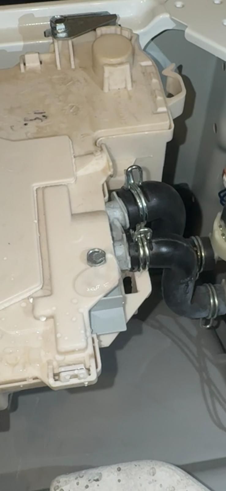 Das Programm wurde nach ca. 1 Stunde (anstatt von ca 3 Stunden) vorzeitig beendet und es wurde wieder nicht geschleudert. Die Pumpe pumpte kurz Wasser ab (zumindest steht kein Wasser sichtbar in der Trommel), lief danach jedoch weiter, obwohl das Programm beendet war. Die Pumpe stoppte erneut erst nach dem Ziehen des Netzsteckers. Auch hierbei kein Fehlercode.
